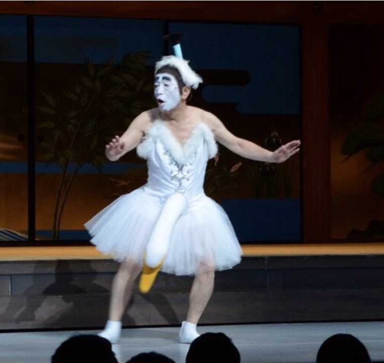 バレエ着に股間に白鳥。