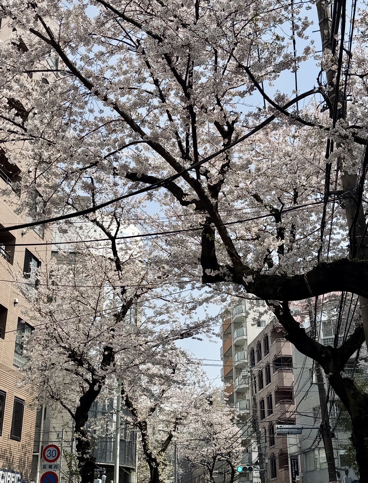道路の両サイドに桜が